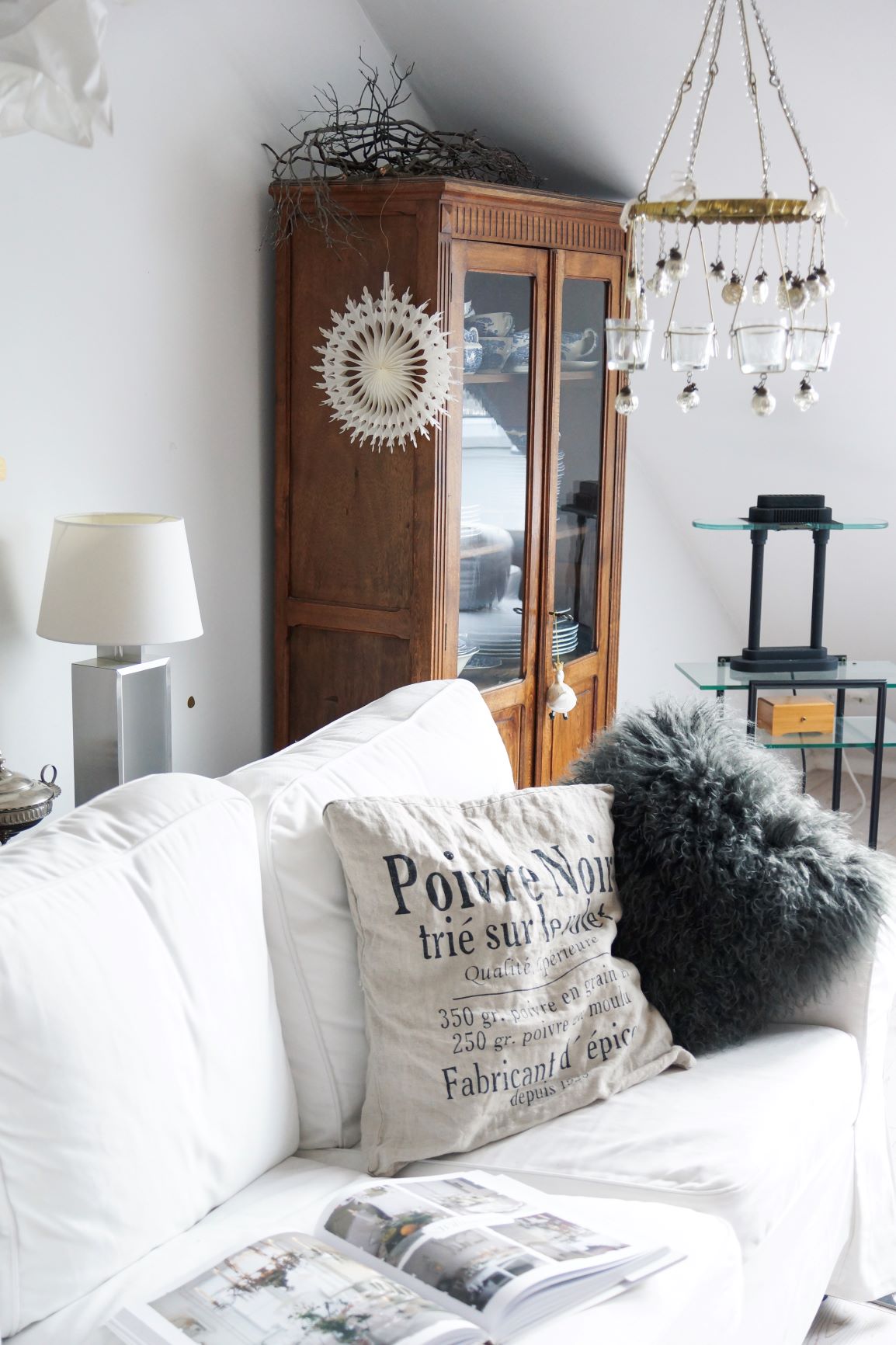 Der Alltag hat uns nach den kuscheigen Sofatagen wieder …. die Weihnachtssachen sind fast alle in den Kisten verstaut……. und ich genieße das luftige….. klare…… Ambiente …. ohne Glitzerdeko und Weihnachtsklimbim…… Heute nehme ich euch mit in unser Wohnzimmer. Wir haben es ganz bewusst in das Dachgeschoss gelegt…. tagsüber findet bei uns das Leben im Erdgeschoss statt … auch da gibt es ein kleines Sofa zum Lümmeln….aber manchmal brauche ich einen Raum……….. wo das Leben etwas draußen bleibt……. Kleine Auszeiten oder am Abend ….da ziehe ich mich gerne zurück….. in unser stilles Reich….. oben wo man dem Himmel ein wenig näher ist…. Perspektivenwechsel …….