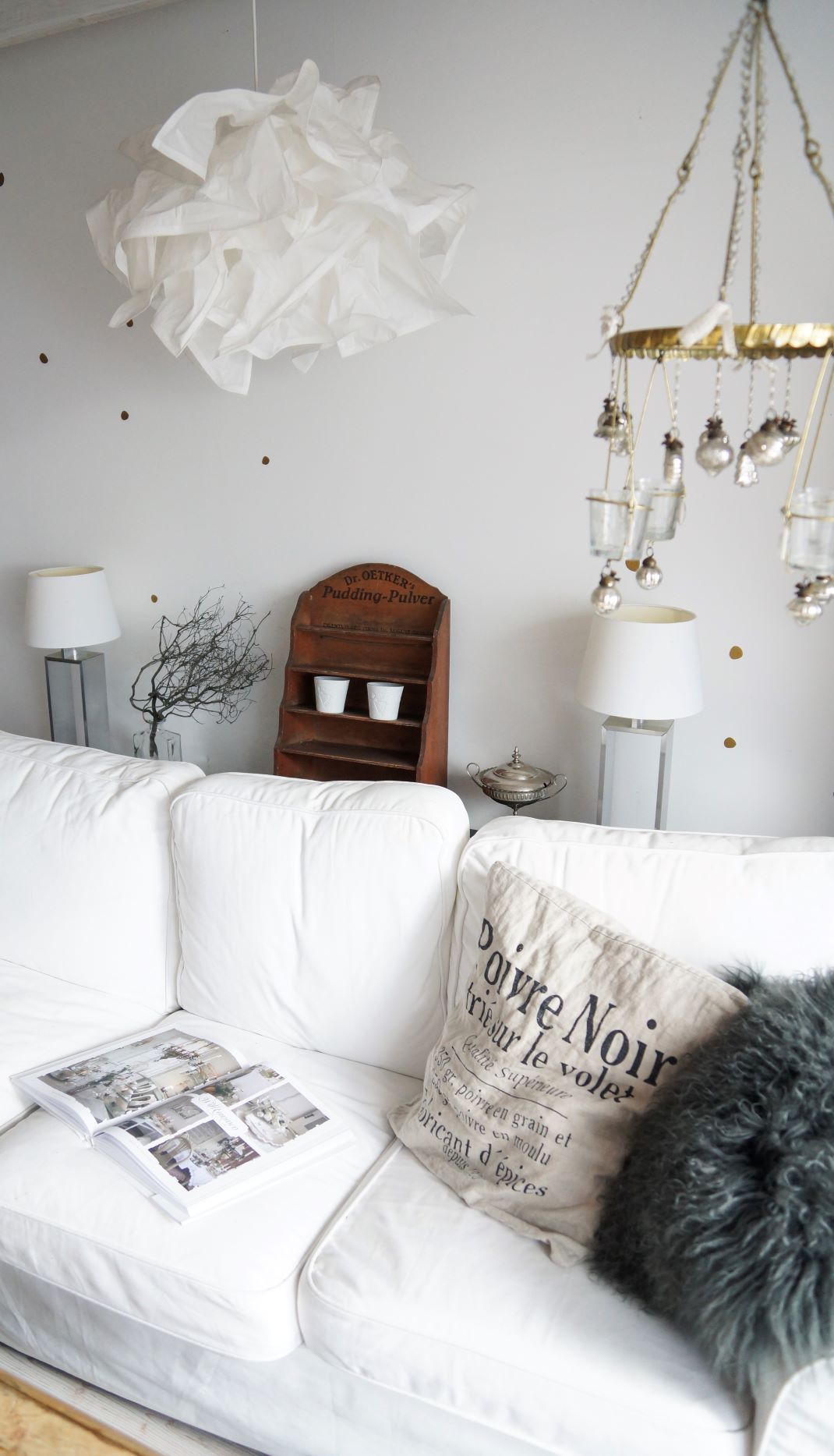 Die Grundfarbe von Boden .. Decken …und Wänden ist hier weiß. Die Möbel sind alt und aus Nussbaum…. dazwischen ein paar moderne Element in schwarz….ich liebe Kontraste ……. und Kleinmöbel…….. So kann ich ganz flott ohne starke Helfer ein wenig umräumen…… Als leidenschaftliche Flohmarktgängerin finde ich immer neue Schätzchen, die ich für die Deko nutzen kann. Damit die Flohmarktsachen ihren morbiden Charme etwas verlieren denke ich mir gerne ein modernes DIY aus. So steht alt und neu wieder im Kontrast ……. auch in der Deko. Nach der großen Wegräumaktion der Weihnachtssachen musste es flott gehen… schaut selbst und macht es am Besten gleich nach, wenn es euch gefällt……