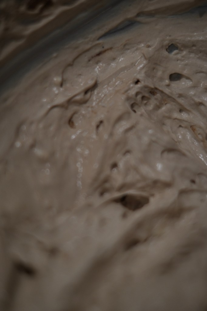 Jetzt kommt das Kabapulver ins Spiel. Ich nehme in der Regel etwa vier Esslöffel – das hat sich für mich als perfekte Balance zwischen Kakao und Süße erwiesen. Aber hier kannst du ruhig ein bisschen nach deinem eigenen Geschmack gehen. Manche mögen es schokoladiger, andere eher dezent. Die Konsistenz der Creme verändert sich durch den Kaba kaum, deshalb darf man ruhig ein wenig experimentieren.